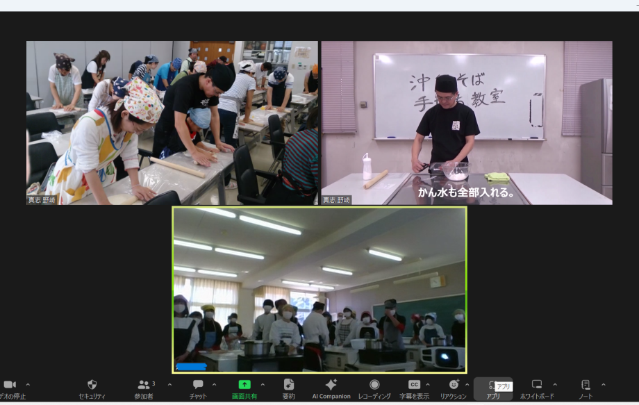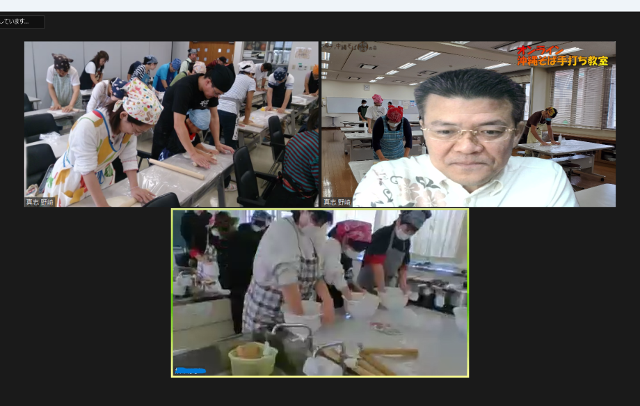 オンラインで「沖縄そば」を小麦粉から麺を作っていきます。