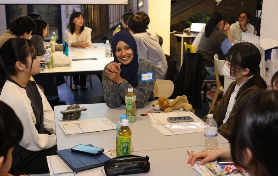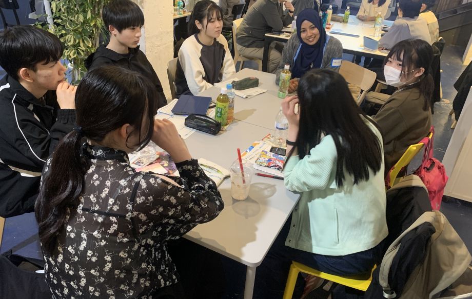 外国人メンバーとグループになり、テーマ(平和、国際理解等)に沿ってディスカション。