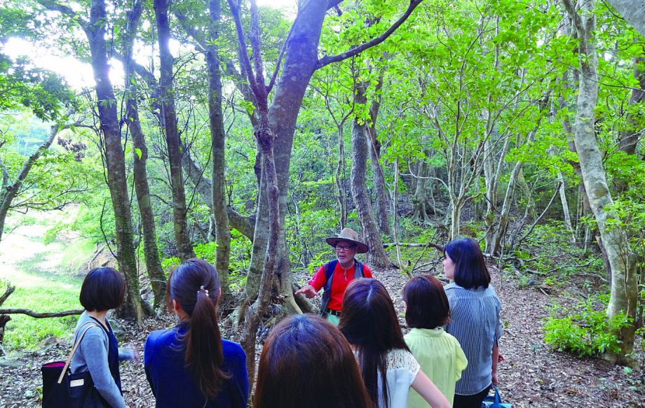 「久米島の渓流・湿地」としてラムサール条約に登録されたエリアにある「ニブチの森」。みずみずしい緑が覆う動植物の宝庫であり、重要無形文化財である久米島紬の染料になるシイをはじめ、島の生活や文化に欠かすことのできない草木の覆い茂る森になります。久米島特有の自然を体感し、森と水、そして島の人と森との関わりを学べる自然・環境・民俗学習プログラムです。