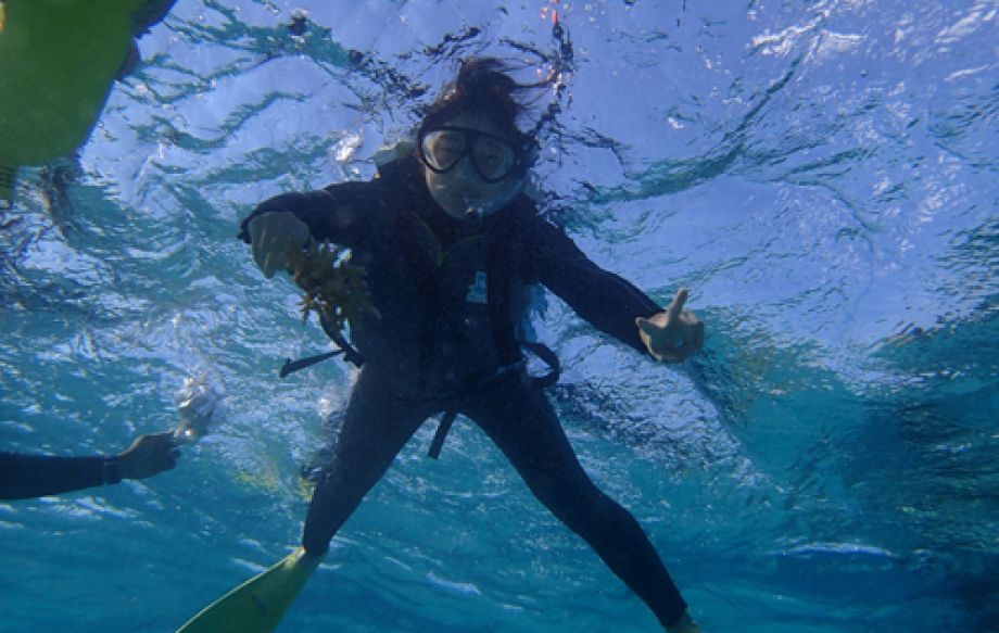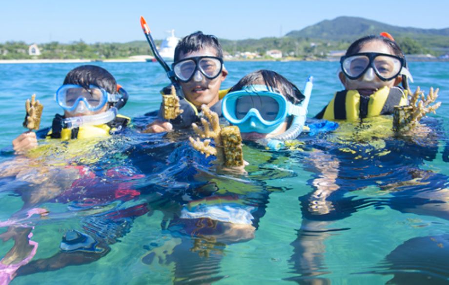 シュノーケルで海の中を観察しながら、サンゴを再生させるプログラム