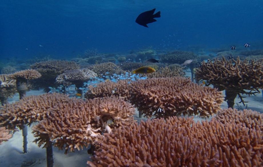 沖縄の海は、壮大なサンゴ礁が広がり、サンゴを住まいとする魚貝類が豊富で、世界屈指の自然環境を誇っていましたが、近年の地球温暖化や、赤土流出でサンゴの白化現象による死滅、 オニヒトデ大発生での食害等でサンゴが激減し、危機にさらされています。県では官民一体となり様々な、プロジェクトに取り組んでいます。