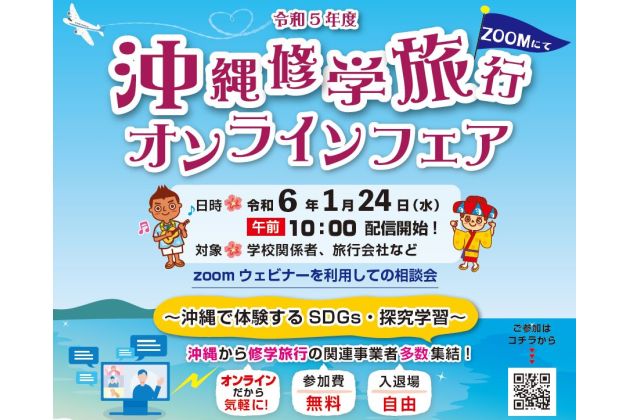 沖縄県及び一般財団法人沖縄観光コンベンションビューロー(OCVB)では、新学習指導要領の改訂に対応する、「SDGs」や「探究学習」に関心が高まっている状況を踏まえ、~沖縄で体験するSDGs・探究学習~をコンセプトに、「沖縄修学旅行オンラインフェア」を開催いたします。