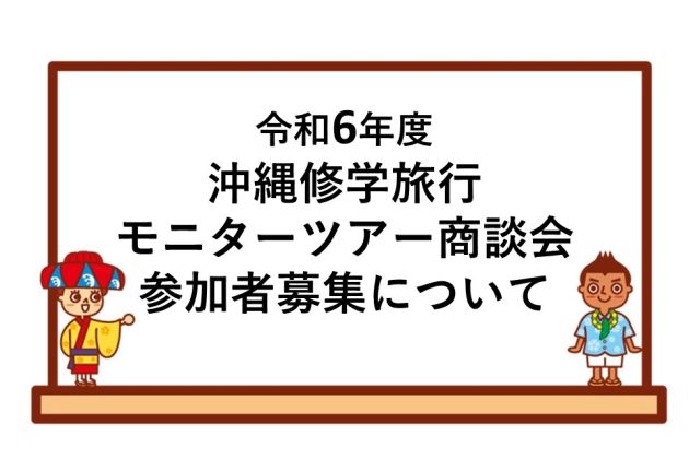 2025.01.30 お知らせ 誠に勝手ながら発送業務の都合上、令和7年3月1日 (土) から当面の間、資料(おきなわ修学旅行ナビ、ポスター、DVD)の出荷をお休みいたします。2月28日(金)までに承りました申請につきま…