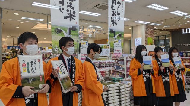 「コウノトリ育むお米」は近畿大学付属豊岡高等学校の地元、兵庫県但馬地域で作られたお米で、沖縄県の消費量が多いそうです。
